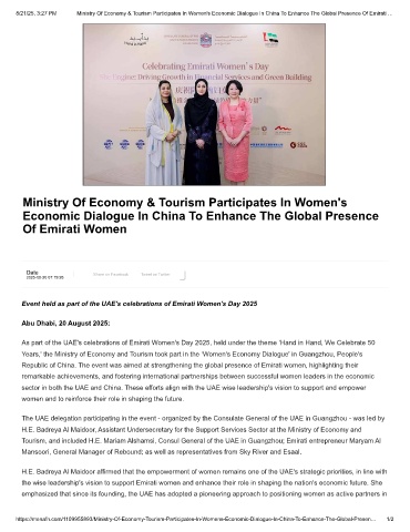 8/21/25, 3:27 PM Ministry Of Economy & Tourism Participates In Women's Economic Dialogue In China To Enhance The Global Presence Of Emirati …