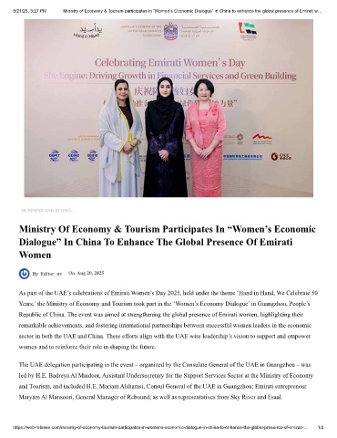 8/21/25, 3:27 PM Ministry of Economy & Tourism participates in “Women’s Economic Dialogue” in China to enhance the global presence of Emirati w…
