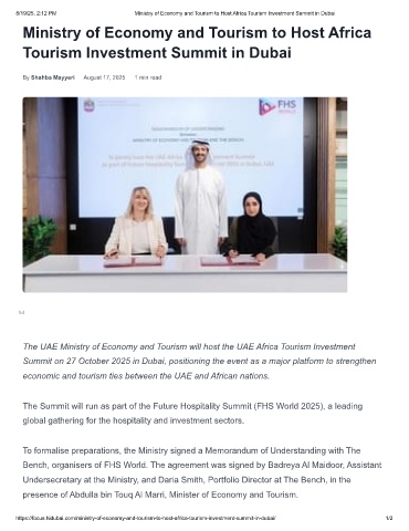 8/19/25, 2:12 PM Ministry of Economy and Tourism to Host Africa Tourism Investment Summit in Dubai