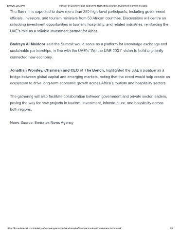 8/19/25, 2:12 PM Ministry of Economy and Tourism to Host Africa Tourism Investment Summit in Dubai