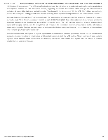 8/19/25, 2:13 PM Ministry of Economy & Tourism to host ‘UAE Africa Tourism Investment Summit' as part of FHS World 2025 in Dubai this October to…
