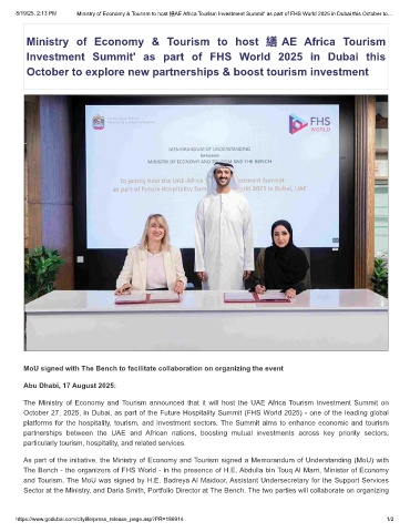 8/19/25, 2:13 PM Ministry of Economy & Tourism to host 繕AE Africa Tourism Investment Summit' as part of FHS World 2025 in Dubai this October to…