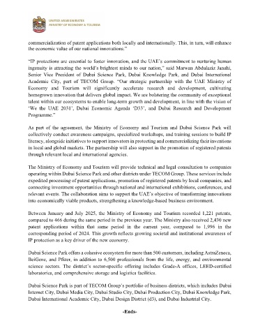 As part of the agreement, the Ministry of Economy and Tourism and Dubai Science Park will