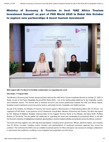 8/19/25, 2:13 PM Ministry of Economy & Tourism to host ‘UAE Africa Tourism Investment Summit' as part of FHS World 2025 in Dubai this October to…