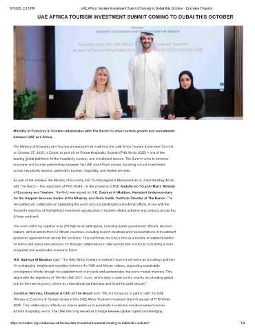 8/19/25, 2:13 PM UAE Africa Tourism Investment Summit Coming to Dubai this October - Emirates Projects