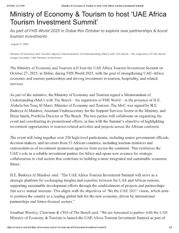 8/19/25, 2:13 PM Ministry of Economy & Tourism to host ‘UAE Africa Tourism Investment Summit’