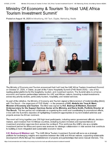 8/19/25, 2:13 PM Ministry Of Economy & Tourism To Host ‘UAE Africa Tourism Investment Summit’ - AM Marketing, Media, Advertising News in MENA
