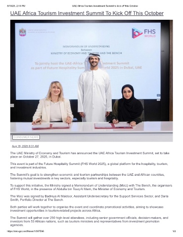 8/19/25, 2:14 PM UAE Africa Tourism Investment Summit to kick off this October