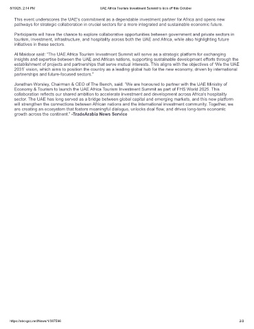 tourism, investment, infrastructure, and hospitality across both the UAE and Africa, while also highlighting future