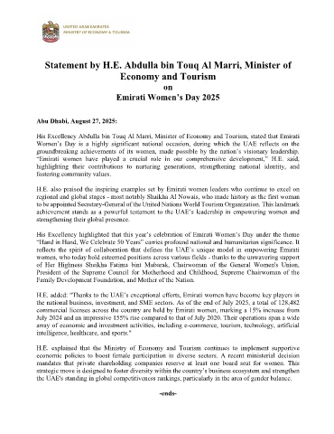 His Excellency Abdulla bin Touq Al Marri, Minister of Economy and Tourism, stated that Emirati