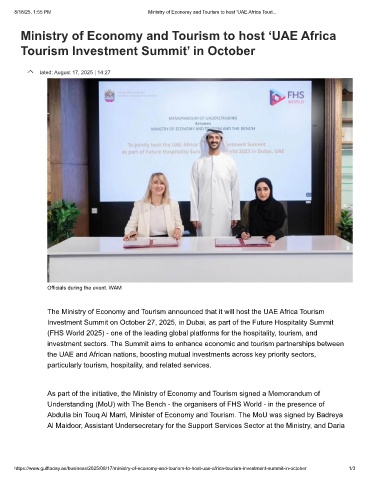 8/18/25, 1:55 PM Ministry of Economy and Tourism to host ‘UAE Africa Touri...