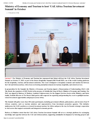 8/18/25, 1:56 PM Ministry of Economy and Tourism to host ‘UAE Africa Tourism Investment Summit’ in October | Business | emirates7