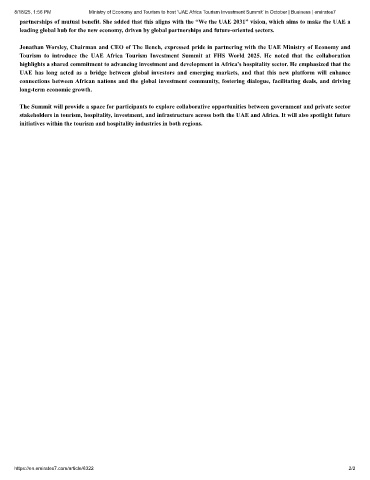 stakeholders in tourism, hospitality, investment, and infrastructure across both the UAE and Africa. It will also spotlight future