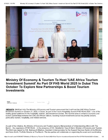 8/18/25, 1:56 PM Ministry Of Economy & Tourism To Host 'UAE Africa Tourism Investment Summit' As Part Of FHS World 2025 In Dubai This October…