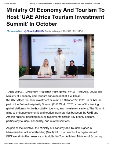 8/18/25, 1:57 PM Ministry Of Economy And Tourism To Host ‘UAE Africa Tourism Investment Summit’ In October - UrduPoint
