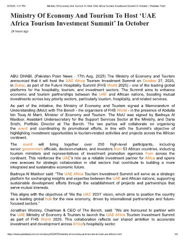 8/18/25, 1:57 PM Ministry Of Economy And Tourism To Host ‘UAE Africa Tourism Investment Summit’ In October | Pakistan Point