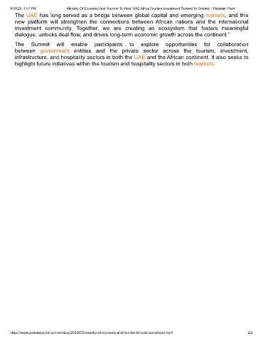 8/18/25, 1:57 PM Ministry Of Economy And Tourism To Host ‘UAE Africa Tourism Investment Summit’ In October | Pakistan Point