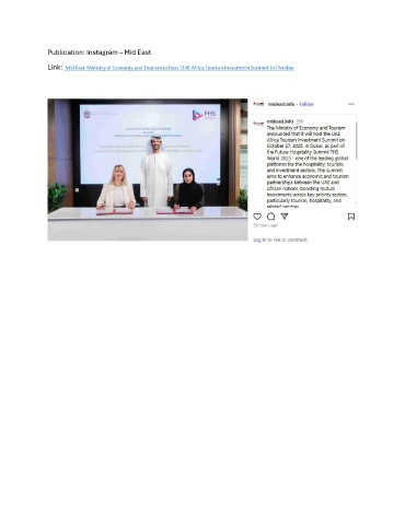 Publication: Instagram – Mid East Link: Mid East: Ministry of Economy and Tourism to host ‘UAE Africa Tourism Investment Summit’ in October