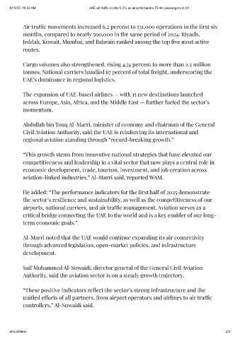 8/15/25, 10:22 AM UAE air traffic climbs 6.2% as airports handle 75.4m passengers in H1