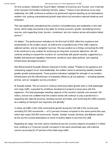 8/14/25, 2:28 PM UAE airports receive 75.4 million passengers in H1 2025, ...