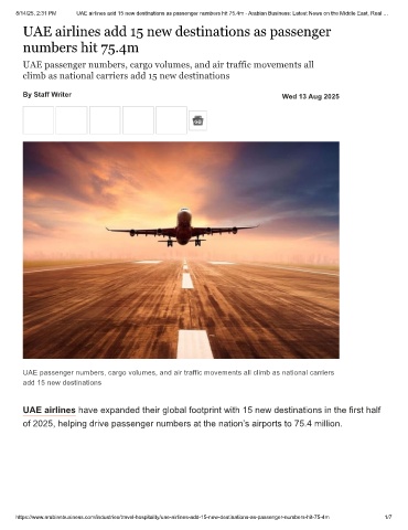 8/14/25, 2:31 PM UAE airlines add 15 new destinations as passenger numbers hit 75.4m - Arabian Business: Latest News on the Middle East, Real …