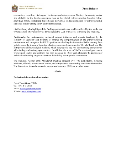 environment and strengthen the UAE’s position as a leading destination for SMEs. Among these