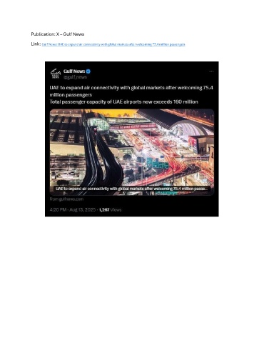 Publication: X – Gulf News Link: Gulf News: UAE to expand air connectivity with global markets after welcoming 75.4 million passengers