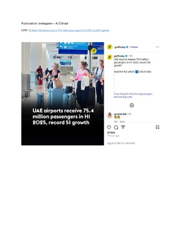 Publication: Instagram – Al Etihad Link: Al Etihad: UAE airports receive 75.4 million passengers in H1 2025, record 5% growth