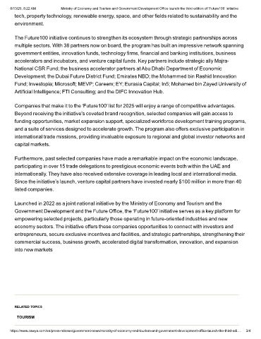 8/13/25, 8:22 AM Ministry of Economy and Tourism and Government Development Office launch the third edition of ‘Future100’ initiative