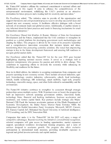 8/13/25, 8:22 AM Company News in Egypt: Ministry of Economy and Tourism and Government Development Office launch the third edition of ‘Future…