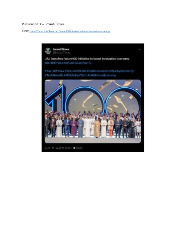 Publication: X – Emirati Times Link: Emirati Times: UAE launches Future100 initiative to boost innovation economy