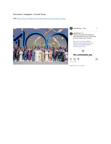 Publication: Instagram – Emirati Times Link: Emirati Times: UAE launches Future100 initiative to boost innovation economy