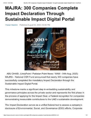 8/7/25, 10:04 AM MAJRA: 300 Companies Complete Impact Declaration Through Sustainable Impact Digital Portal - UrduPoint