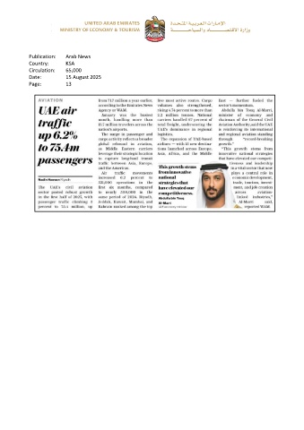 Publication: Arab News Country: KSA Circulation: 65,000 Date: 15 August 2025 Page: 13