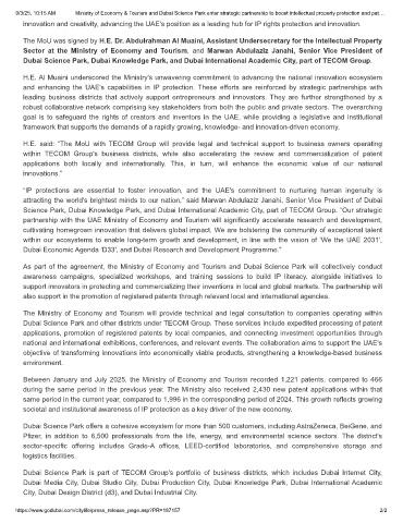 9/3/25, 10:15 AM Ministry of Economy & Tourism and Dubai Science Park enter strategic partnership to boost intellectual property protection and pat…