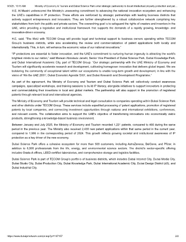 9/3/25, 10:15 AM Ministry of Economy & Tourism and Dubai Science Park enter strategic partnership to boost intellectual property protection and pat…