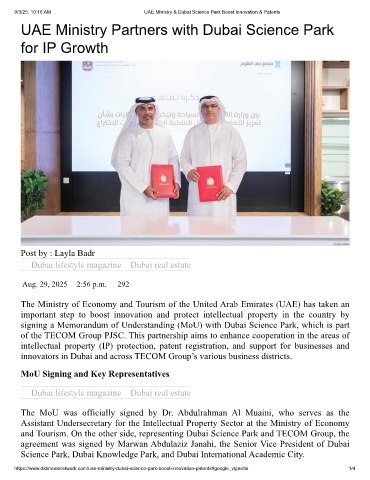 9/3/25, 10:16 AM UAE Ministry & Dubai Science Park Boost Innovation & Patents