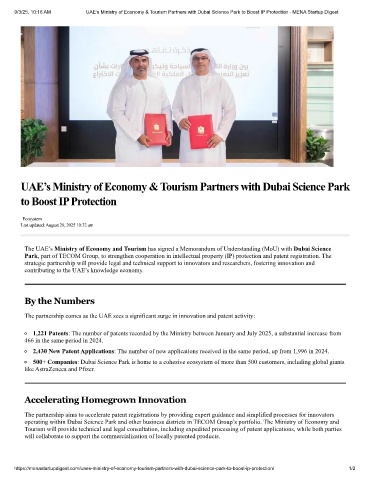 9/3/25, 10:16 AM UAE's Ministry of Economy & Tourism Partners with Dubai Science Park to Boost IP Protection - MENA Startup DIgest