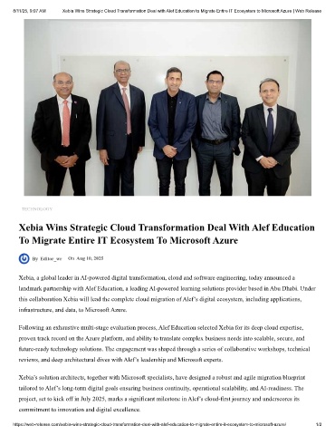 8/11/25, 9:07 AM Xebia Wins Strategic Cloud Transformation Deal with Alef Education to Migrate Entire IT Ecosystem to Microsoft Azure | Web Release