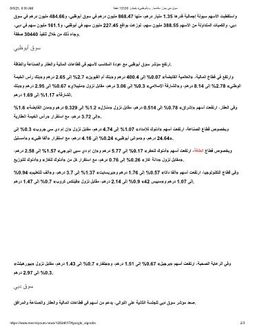 قوﺳ ﻲﻓ مھرد نوﯾﻠﻣ 484.66و ،ﻲﺑظوﺑأ قوﺳ ﻲﻓ مھرد نوﯾﻠﻣ 868.47 ﺎﮭﻧﻣ ،مھرد رﺎﯾﻠﻣ 1.35 ﺎھردﻗ ﺔﯾﻟﺎﻣﺟإ ﺔﻟوﯾﺳ مﮭﺳﻷا تﺑطﻘﺗﺳاو