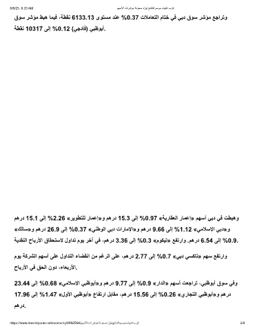 قوﺳ رﺷؤﻣ طﺑھ ﺎﻣﯾﻓ ،ﺔطﻘﻧ 6133.13 ىوﺗﺳﻣ دﻧﻋ %0.37 تﻼﻣﺎﻌﺗﻟا مﺎﺗﺧ ﻲﻓ ﻲﺑد قوﺳ رﺷؤﻣ ﻊﺟارﺗو