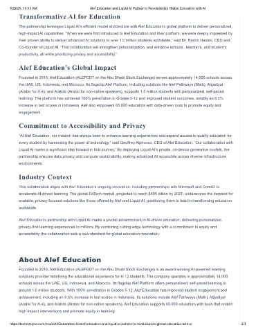 8/22/25, 10:13 AM Alef Education and Liquid AI Partner to Revolutionize Global Education with AI