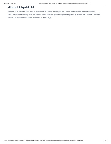 8/22/25, 10:13 AM Alef Education and Liquid AI Partner to Revolutionize Global Education with AI