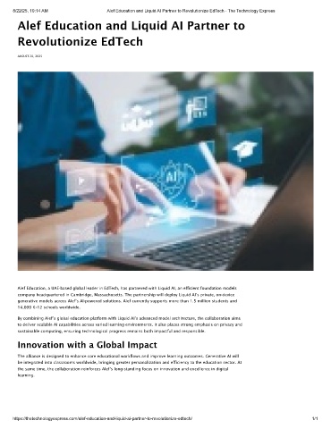 8/22/25, 10:14 AM Alef Education and Liquid AI Partner to Revolutionize EdTech - The Technology Express
