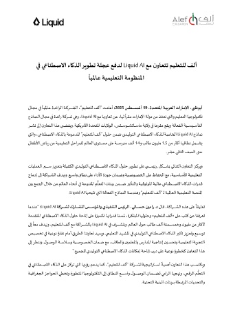 يف يعانطصلاا ءاكذلا ريوطت ةلجع عفدل Liquid AI عم نواعتت ميلعتلل فلأ