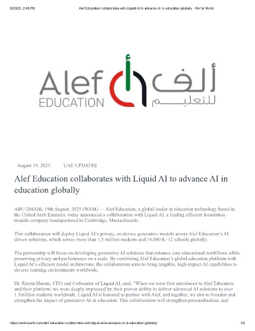 8/20/25, 2:48 PM Alef Education collaborates with Liquid AI to advance AI in education globally - WeTel World