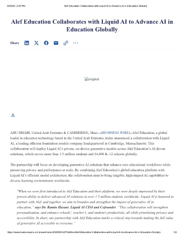 https://www.businesswire.com/news/home/20250814273448/en/Alef-Education-Collaborates-with-Liquid-AI-to-Advance-AI-in-Education-Globally 1/2