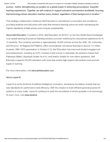 8/20/25, 2:50 PM Alef Education Collaborates with Liquid AI to Advance AI in Education Globally | Business | standard-journal.com