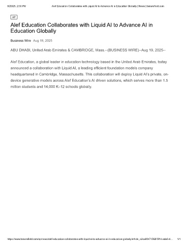 https://www.bakersfield.com/ap/news/alef-education-collaborates-with-liquid-ai-to-advance-ai-in-education-globally/article_e2ca9047-592f-5f14-ada6-4… 1/1