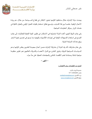 ةدﺎــﯿر مﻋد لﻼﺨ نﻤ ،ﺔــﺤﺎــﯿــــــــــــــﺴﻟا عﺎــطﻗ ﻲﻓ رﺎــﻛﺘﺒﻻا زﯿزﻌﺘﺒ ﺎــﻬﻤازﺘﻟا ﺎــﻬﺘﻠﺨادــﻤ لﻼﺨ تارﺎــﻤﻹا ﺔــﻟود تددــﺠو